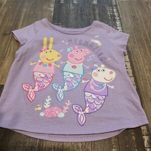 Charming lavender tee with playful mermaid friends graphic. Ideal for fun adventures.