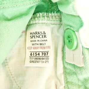 Marks & Spencer green jeans, size 1& 1/2 to 2 years, internal belt elastic, pink detail thread with silver buttons, excellent condition!