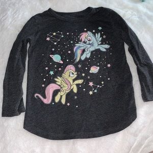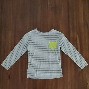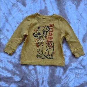 Mustard long sleeve tee featuring playful characters. Comfortable and fun for kids.