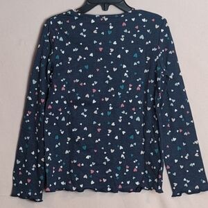 Jumping Beans girls long sleeve ribbed heart print blue tee.