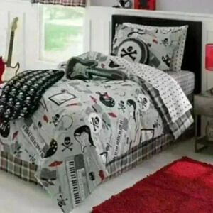 Jumping Beans Twin Bedding Set Rock Roll Skull Drum Guitar