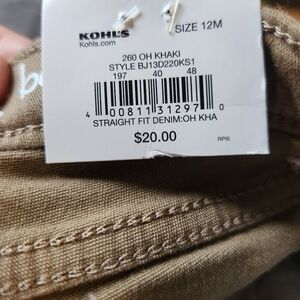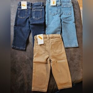 NWT 3 pair of size 12 month jeans/pants. dark denim, light denim and khaki.