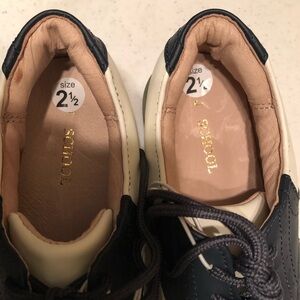 Jumping Jacks cheerleader III Oxford saddle shoe. 100% leather upper and lining, navy and white. Sold out in most places. Cushioned sock lining, padded tongue and collar adds extra comfort. Rubber outsole provides traction. Ideal choice for school uniforms. Youth 2.5. New no box.