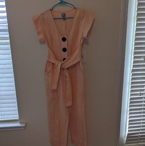 Super cute peach pale jumpsuit. New with tags never worn! Flattering
