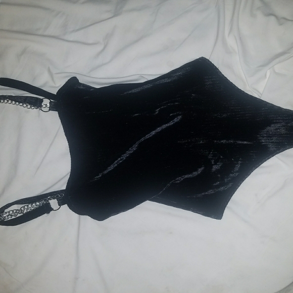 Chain on shoulders new without tags has a velvety feel. Super cute
