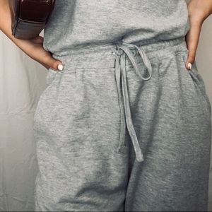 NEW! Sweat material turtle neck jumpsuit. Has zipper in the back and tie around the waist. Very comfortable