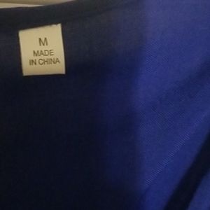 Thin material and see through. The jumpsuit comes with a blue belt that is not attached.