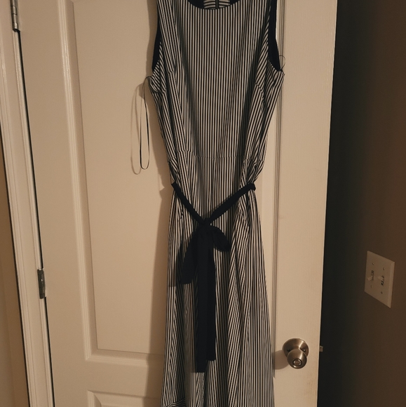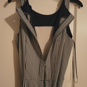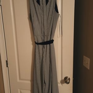 Jumpsuit by Gabby, it has the wide legs with 2 side pockets and a belt. Super cute and it can be worn with a jacket.