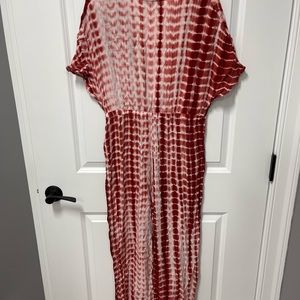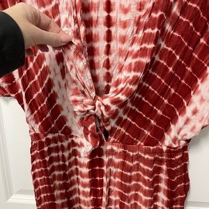 Loose fitting. Low neck. Stretchy. Ties in the middle. Wide leg. Worn once.