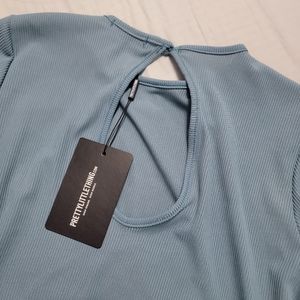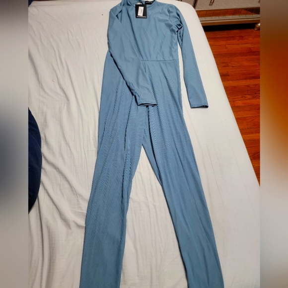 brand new steel blue rib long sleeve thumb hole jumpsuit pretty little thing size 10 stretchy