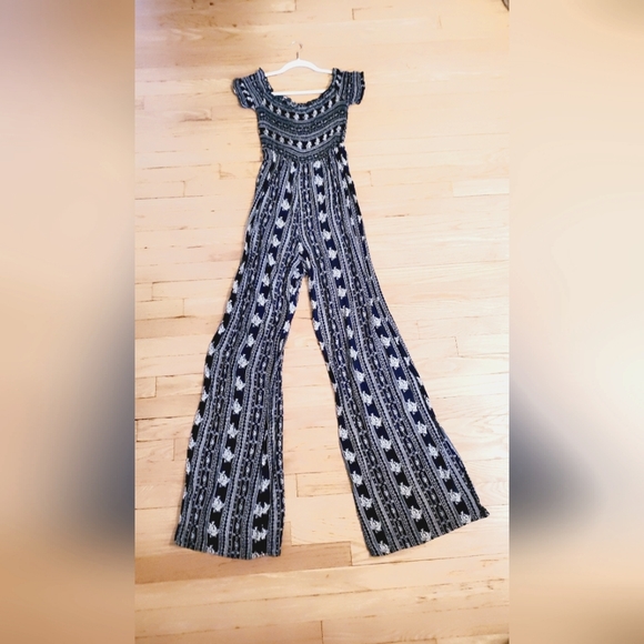 Navy Blue and White wide leg Jumpsuit. Only wore once, good condition!🌟