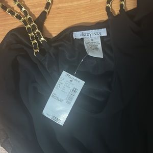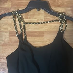 Long leg Jumpsuit -gold chain strap details -light fabric -pockets 100% polyester -Never worn