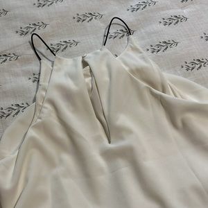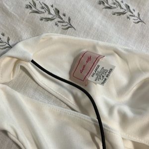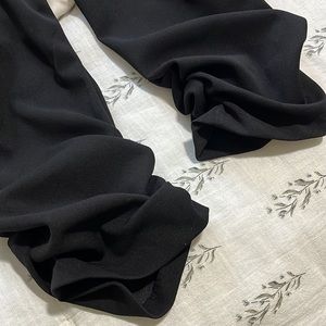 Purchased from RTR sample sale. It’s gently used, but in excellent condition. Top is lined with flowy outer lining. Bottoms are black and fitted. Material does have stretch. Only buttons at the neck, step into style. Ruching at ankle to show off your shoes