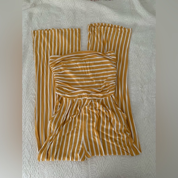 Mustard striped strapless jumpsuit