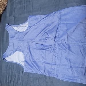 brand new never worn jumpsuot size small denim like but very silky material. long straight legged with adjustable tie wrap around waist and a functional zipper at front. very little stretch