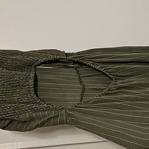 Green lightly striped Jump suit. long in length . back has a beautiful large keyhole opening