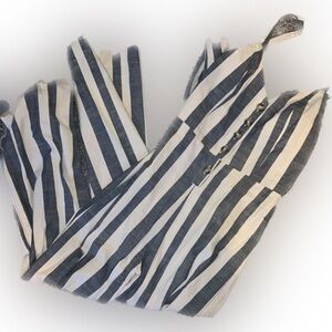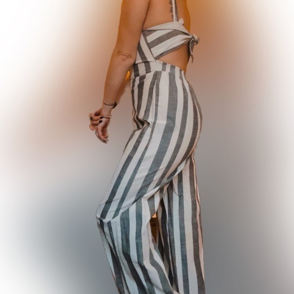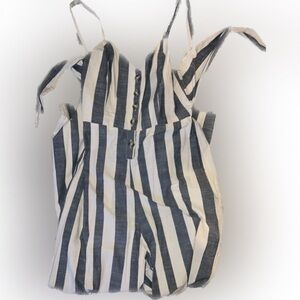 Grey and white striped jumpsuit.