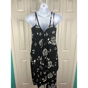 Jumpsuit M/L Boho Lagenlook Baggy Harem Adjustable Spaghetti Strap Black Floral