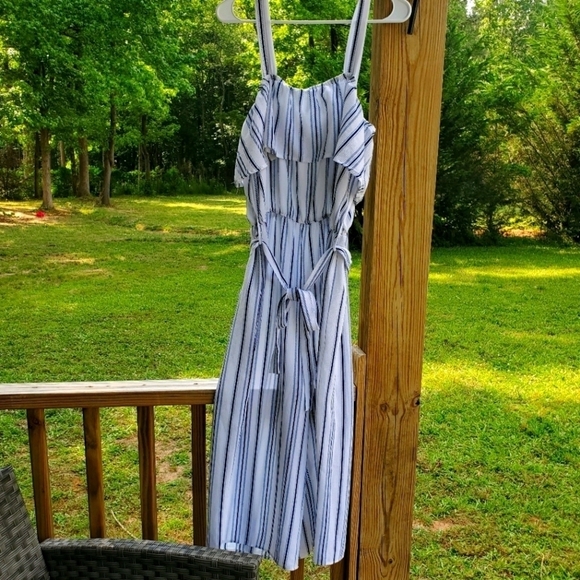 Jumpsuit Pants White with Blue Ruffle Top Tanktop