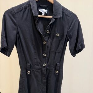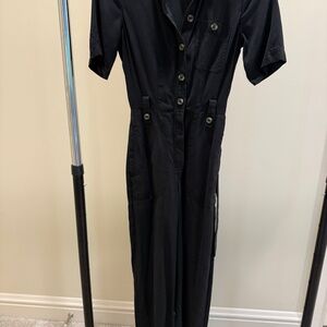 Great condition black button jumpsuit. Buttons and ties in front. All buttons intact and comes with tie. Very tight fit. Must be a true size zero.