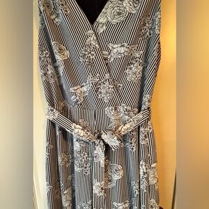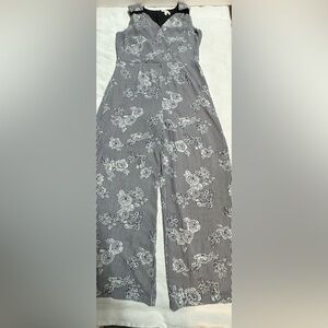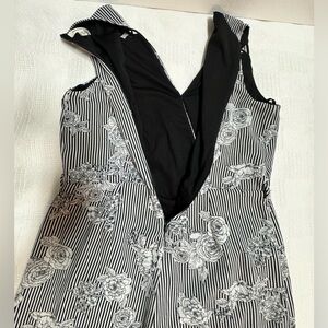 Black and white floral sleeveless jump suit , Vneck , with a zipper on the back