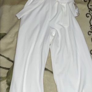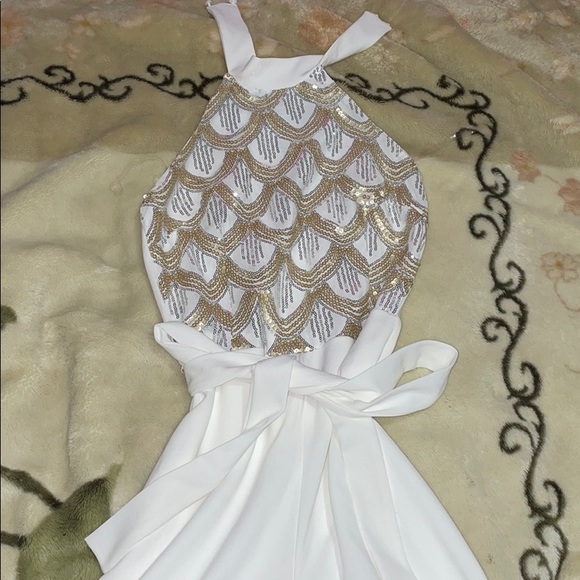 White jumpsuit with gold and silver on it. Very comfy and long