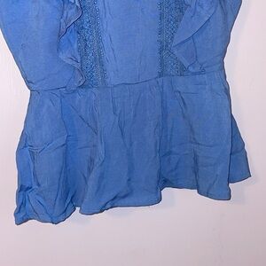Jun & Ivy Fancesca’s Blue Crochet Detail Peplum Open Back Blouse size XS