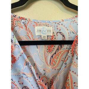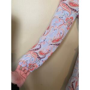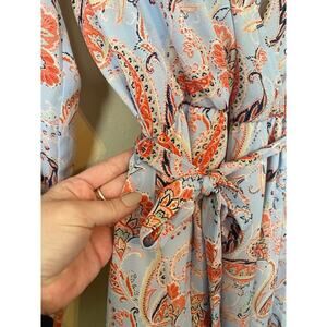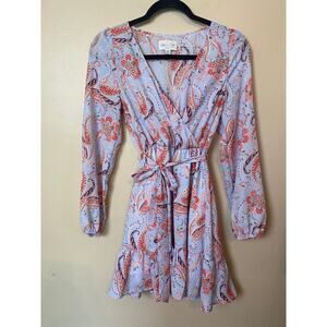Jun & Ivy Paisley Wrap Long Sleeve Belted A-Line Mini Dress. size xxs. good condition, from francescas. baby blue and coral
