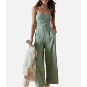 Jun & Ivy Sage Green Open Back Tie Jumpsuit Flowy Wide Leg Romper XS Boho