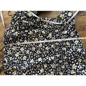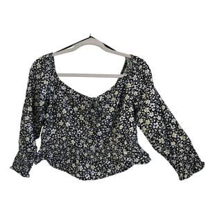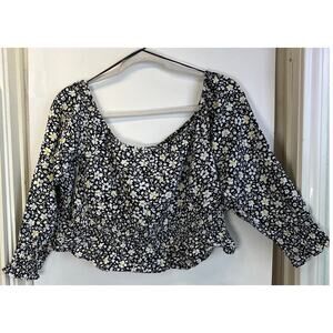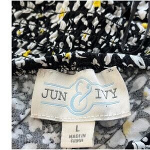 Jun & Ivy Womens L Black/Yellow Floral Print Smock Waist Blouse Fairy/Gypsy