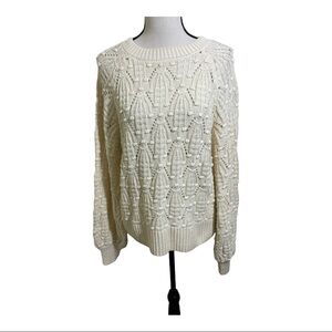 Jun & Ivy crewneck poocorn knit long sleeves Small. Cotton. Off white. Sweater.