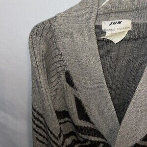 Jun Yumiko Tamura Cardigan Sweater Men’s XL Tan Brown 100% Laine Wool Vtg 80’s
