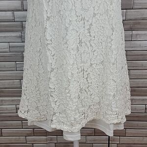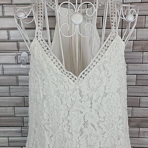 Cotton nylon blend all lace summer mini dress fully lined by with a v-neck racerback halter top. Great pre-owned condition