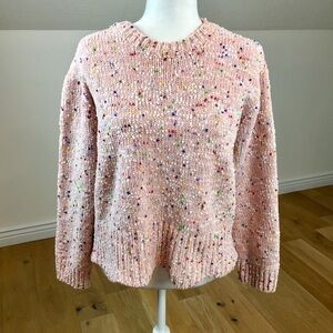 Francesca's Collections Jun & Ivy Pink Confetti Scalloped Crew Neck Sweater