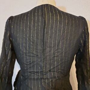 It is a little sheer. Ties at side. Elastic sleeve end.