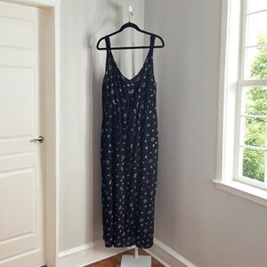 This elegant black maxi dress features a chic polka dot pattern, perfect for any occasion. Its lightweight and flowy design offers both comfort and style. Adjustable straps and a drawstring waist ensure a perfect fit on this comfy maxi by Junarose in anallover artsy polka dot print.