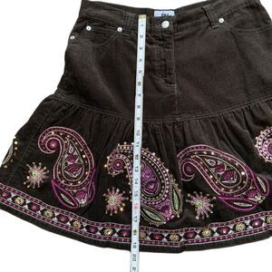 Junction West Brown Pink Embroidered Paisley Skirt Sz 10 Boho Indie Kawaii Fairy
