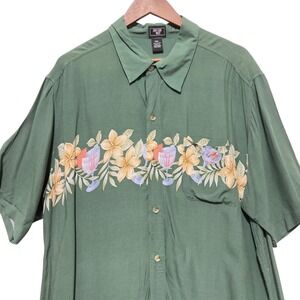 Junction West Mens Hawaiian Shirt XXL Green Floral Tropical Resort Rayon Camp