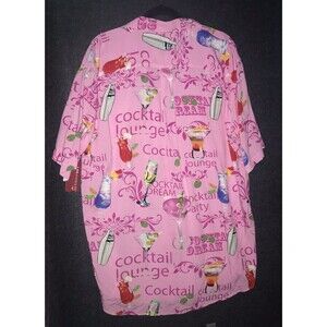 Junction West Shirt XL Drinks Cocktail Lounge Martini Hawaiian Button Up Pink .
