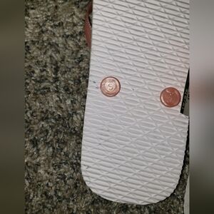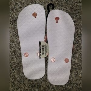 Vibrant tropical flip flops with pink straps. Perfect for summer. There are some small imperfections on the bottoms but they are NWT, never worn.