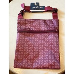 Juncture Red Floral design Crossbody Bag Sac adjustable strap 8 x 9 1/2 inches