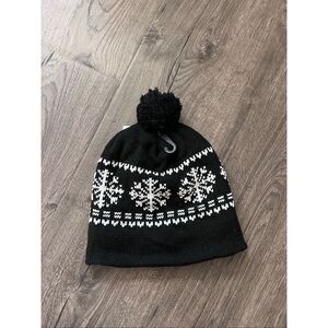 Juncture Unisex Men Women Black Toboggan Winter Hat Cap Ski Snowboard Snowflakes