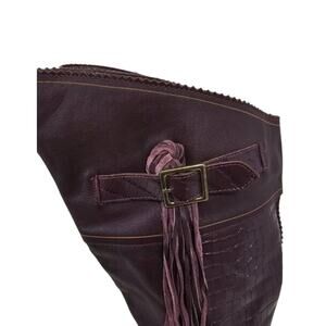 June Ambrose Purple Leather Fringed Embossed High Western Equestrian Boots 9 EUC