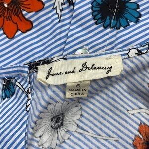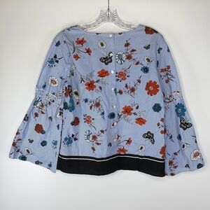 June And Delancey Striped Floral Bell Sleeve Top Size Small