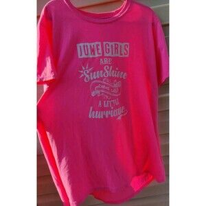 "June Girls Are Sunshine Mixed With A Little Hurricane" T Shirt Neon Pink Sz 3XL