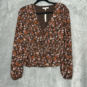June & Hudson 1 Size M Medium Brown Floral Long Sleeve V Neck Cropped Peplum