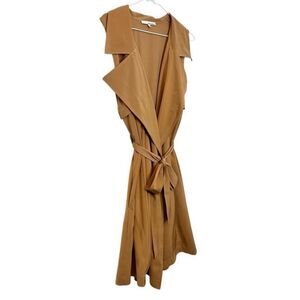 June & Hudson Belted Wide Collar Sleeveless Trench Coat Brown Size Large