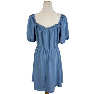 June + Hudson Blue Empire Puff Sleeve Mini Dress Cottagecore Prairie Babydoll