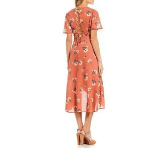 June & Hudson Floral Faux Wrap Lace-Up Back Dress Size M