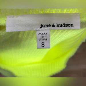 Elevate your wardrobe with the June & Hudson Fluorescent Long Sleeve Shirt in Size S, brand new with tags! Crafted for both comfort and style, this super soft, high-quality shirt is a must-have for any fashion-forward individual. The vibrant fluorescent color ensures you stand out in any crowd, adding a pop of personality to your outfit. Perfect for layering or wearing on its own, this versatile piece seamlessly transitions from day to night. The impeccable craftsmanship promises durability, making it a staple in your closet for seasons to come. Get ready to turn heads and embrace your unique style with this stunning long sleeve shirt!